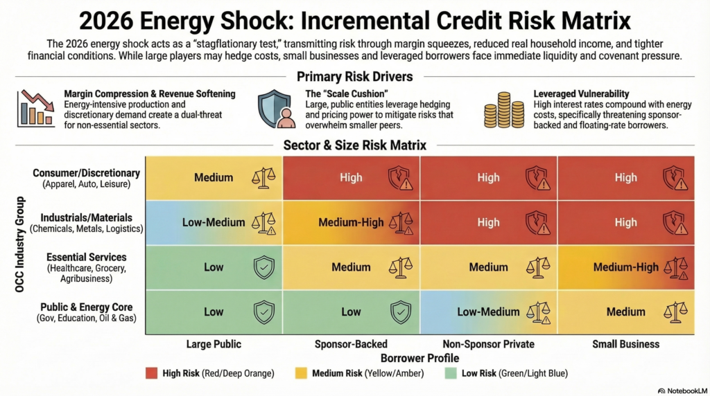 The current energy shock is unlikely to trigger an immediate, broad-based credit event—but that is precisely what makes it dangerous. Credit deterioration is often gradual, surfacing first in margins, liquidity, and borrower behavior before it becomes visible in financial statements or risk ratings.